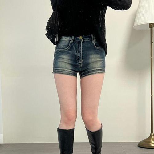 [옷자락]여자 여름 미니 숏 워싱 데님 반바지 숏팬츠