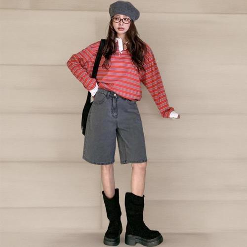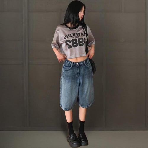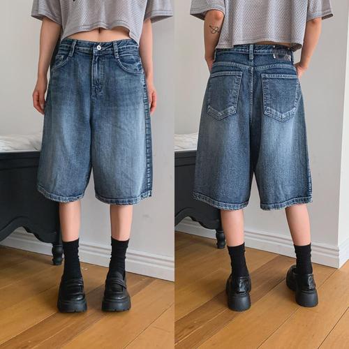 [신상오픈런]여성 빈티지 워싱 버뮤다핏 데님 숏팬츠