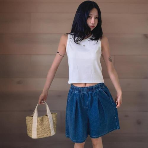[다잇템]여성 와이드핏 백밴딩 데님숏팬츠