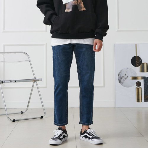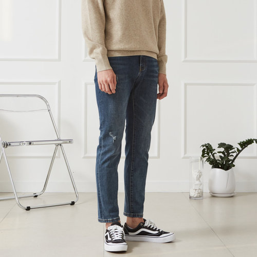 더제이엘 / 남자 진청 슬림핏 스판 히든밴딩 데미지 워싱 청바지