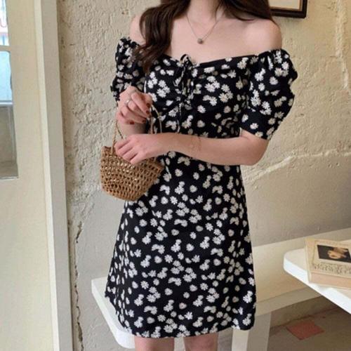 [오너클랜]인기상품 여자 예쁜 데이지 꽃 무늬 퍼프 오프숄더 미니 원피스 [W93168B_260408]