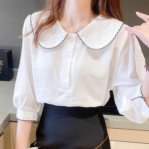 데이트 상의 둥근카라 스탠다드 러블리한출퇴근 쓰리쿼터 회사원