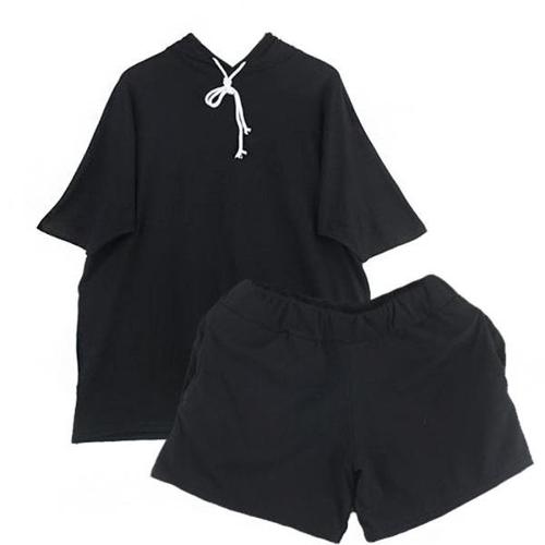[엄지척]데일리로 입기 좋은 여자 반팔 후드 밴딩 반바지 세트_19557933_667501