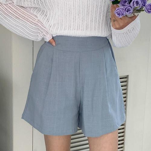 [옷자락]여성 데일리 무채색 코튼반바지 뒷밴딩 핀턱 디자인