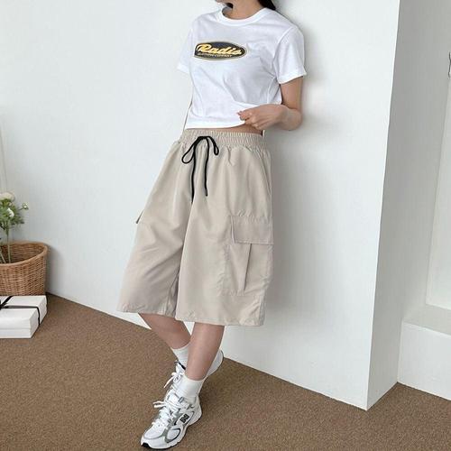 트레이닝 반바지 데일리 스웨트 밴딩 와이드 버뮤다 팬츠