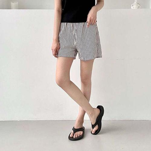[에이치플러스몰]여성 베이직 데일리 스타일 밴딩팬츠 스트라이프 세로줄 엠보 반바지