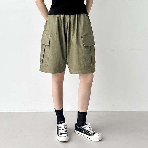 [에이치플러스몰]여성 유니크 데일리 포켓 포인트 디자인 스타일 허리밴딩 카고 반바지
