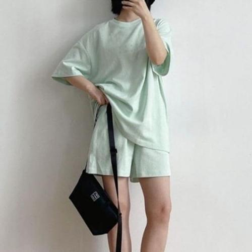[엄지척]반바지 여성티셔츠 산책룩 반팔 오버핏 셋업 데일리_19600961_667501