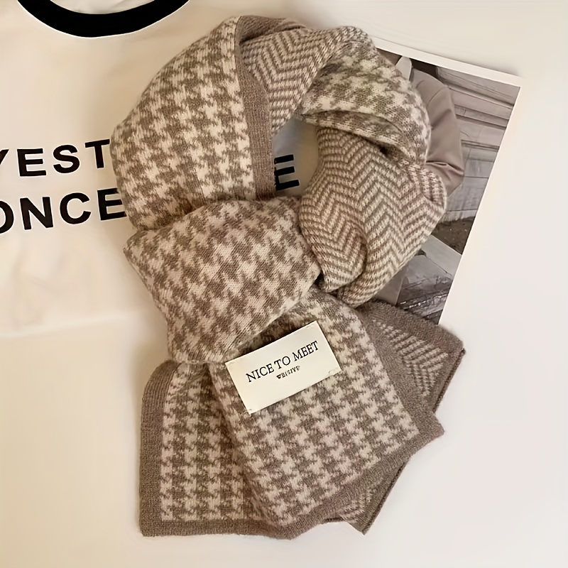 TEMU 여성용 우아한 하운드스타치 체크 스카프 - 부드럽고 따뜻한 겨울 랩, 사계절용 고급 체크 인, 세탁기 사용 가능 - 가을/겨울에 적합, 여성 및 대학생을 위한 이상적인 휴일 선물, 겨울 스카프, 스타일리시한 액세서리, 포근한 소재