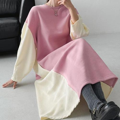 H스타일(OP)골덴콤비기모원피스 겨울 코듀로이 기모 원피스 OPS 드레스 골덴 데일리룩 빅사이즈
