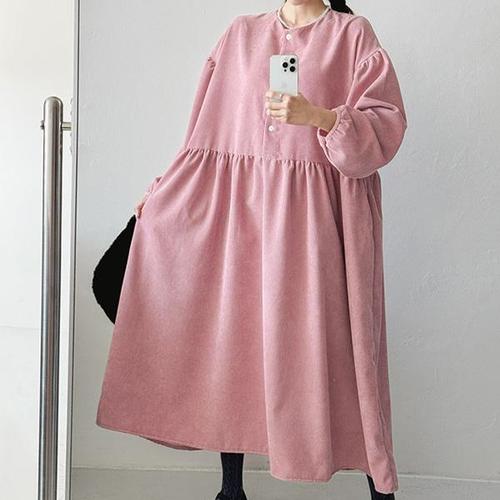 H스타일(OP)골지반오픈코듀로이원피스 겨울 OPS 드레스 골덴 데일리룩 빅사이즈 원피스