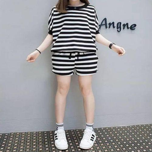 [에이치플러스몰]스트라이프 반팔 상하세트 데일리 여름 트레이닝복
