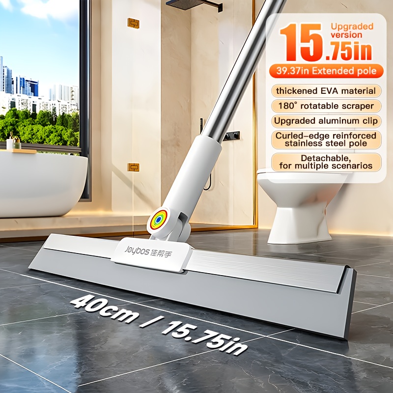 TEMU JOYBOS 조절 가능한 바닥 스퀴지 회전 헤드 & 39.37인치 긴 핸들 - 스테인리스 스틸 로드, PP 고무 블레이드, 타일, 샤워 유리용 - 인체공학적 욕실, 주방, 야외 청소 도구, 현대적인 청소 도구, 내구성 있는 청소 도구, 튼튼한 구조, 가정 관리