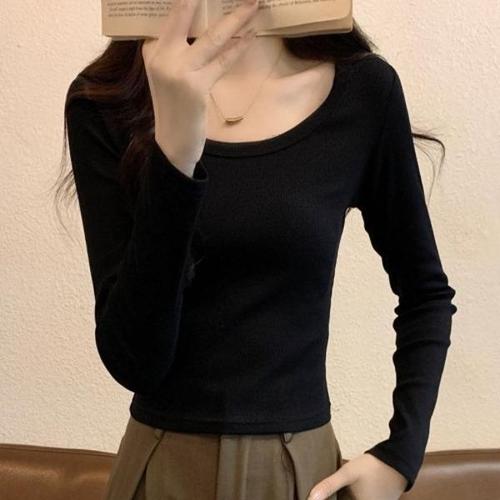 [엄지척]쇄골 강조 딥 U넥 슬림핏 골지 베이직 긴팔 티셔츠_19627907_667501