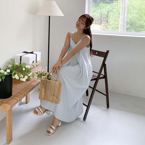 [다잇템]여성 롱 어깨끈 드레스 핀턱 폴리 오버사이즈