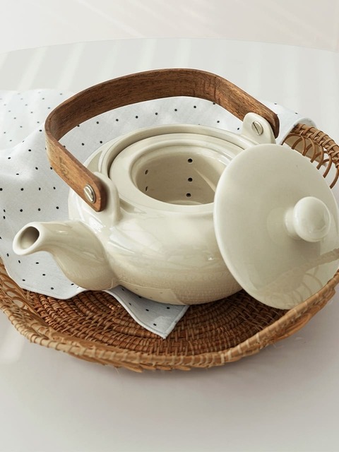 제로재팬 도자기 라운드 티포트 450ml 화이트 차포트 2인용티포트 차주전자 티주전자 도자기주전자 티팟