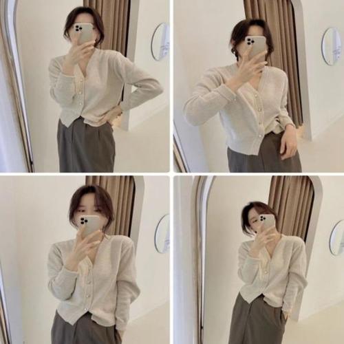 [엄지척]여성 봄 가을 데일리 도톰 금장 세미크롭브이넥가디건_19804610_667501