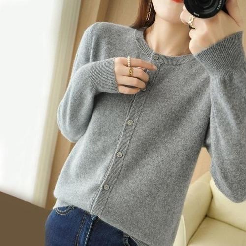 [엄지척]도톰 라운드넥 여성 데일리 긴팔 니트 가디건 아우터_19803992_667501