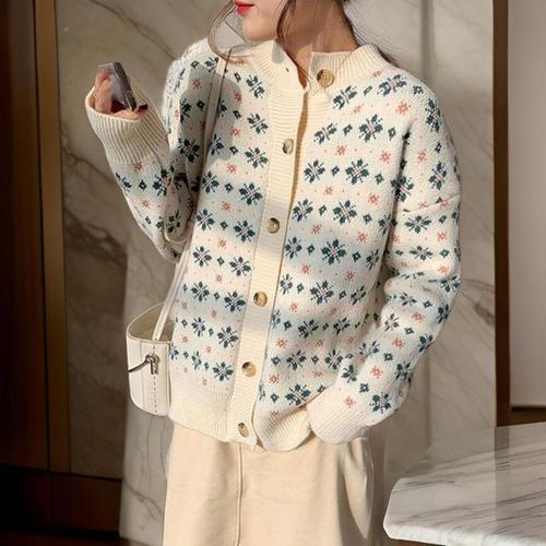 [옷자락]여성 긴팔 니트 도톰 눈꽃 패턴 가디건