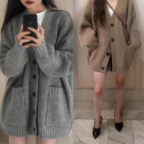 여성 가을/겨울 가디건 데일리 간절기 울 니트 기본 스웨트