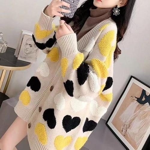 [엄지척]예쁜 패턴 오버핏 도톰 패션 여성 하트 가디건 베이지_19805429_667501
