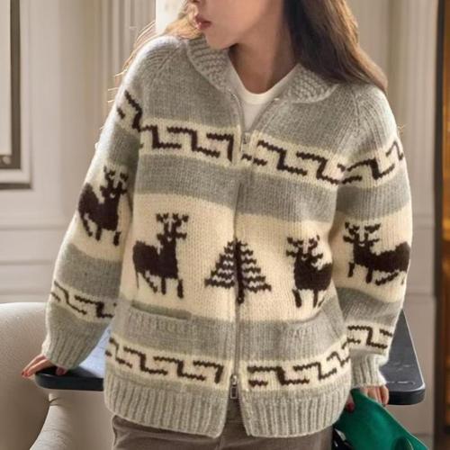 여성 니트 집업 캐주얼 패턴 도톰 가디건