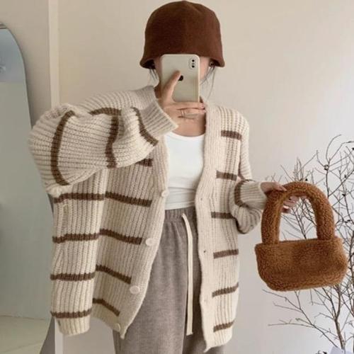 [엄지척]여성 도톰 단가라 스트라이프 롱가디건 니트가디건_19805192_667501