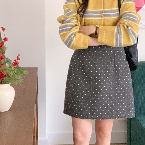 [행복여] 멜리 도트 땡땡이 모직 텍스쳐 밴딩 스커트