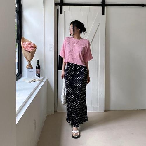 [미라클세븐][M7] 여자 롱 도트 허리밴드 부드러운 스커트