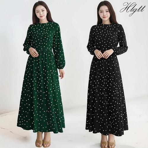 Asure 여성 여름 도트 원피스 프릴 롱원피스