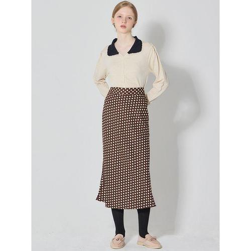 [옷자락]여성 여리핏 도트패턴 이중 뒷밴딩 롱 스커트
