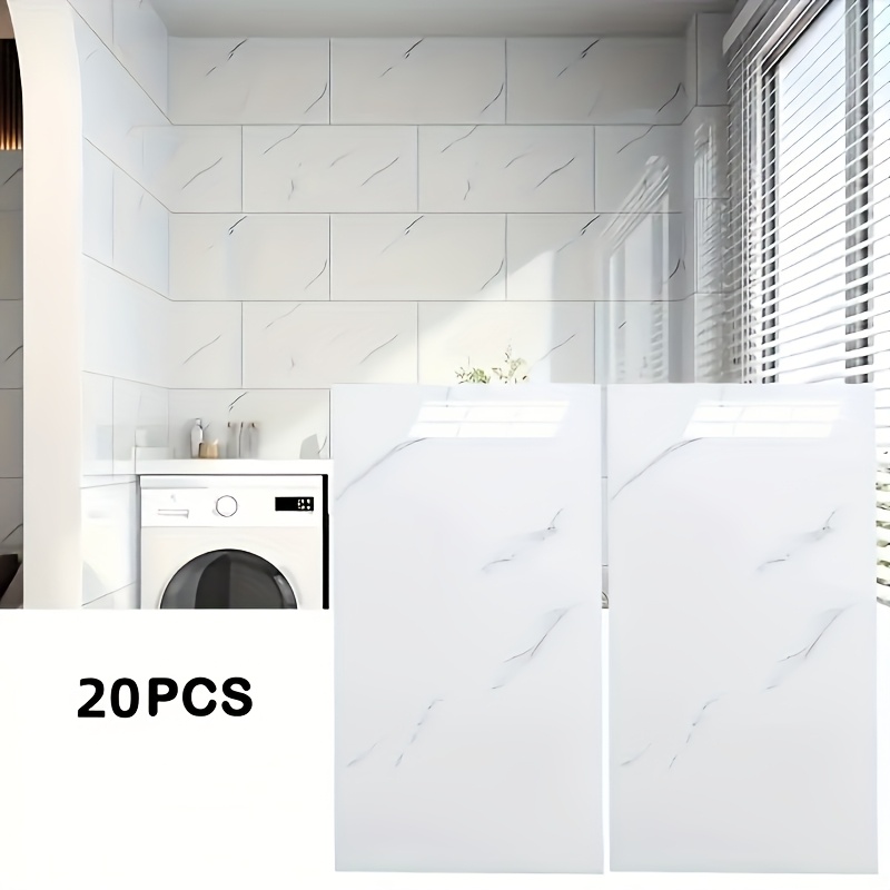 TEMU 3D 자가 점착 벽 스티커 20개입 - 두꺼운 비닐 대리석 패턴 필름, 방수 및 방진, 광택 마감, 주방 백스플래시, 욕실, 거실, 침실 및 창고 리모델링에 적합 (회색/흰색) 주방 벽지
