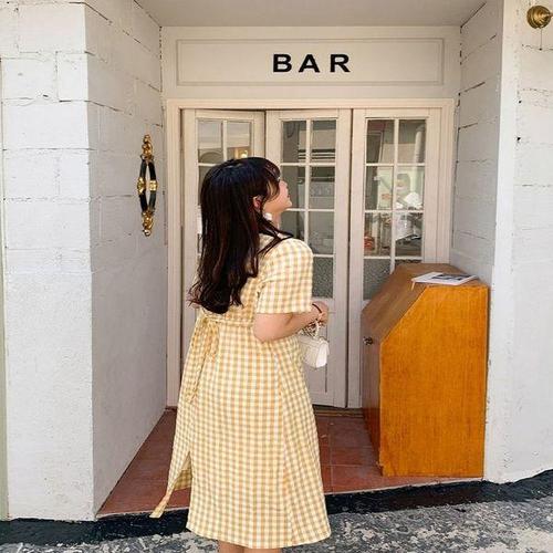 [XBI8J7M2]여대생코디 체크 뒷트임 상큼한룩 뒷트임원피스
