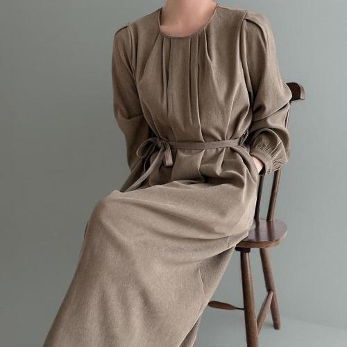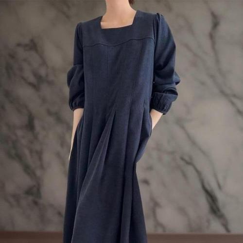 [다잇템][다잇템] 여성 스퀘어넥 FW 핀턱 들러리룩 롱 주머니 드레스_23740519_588872