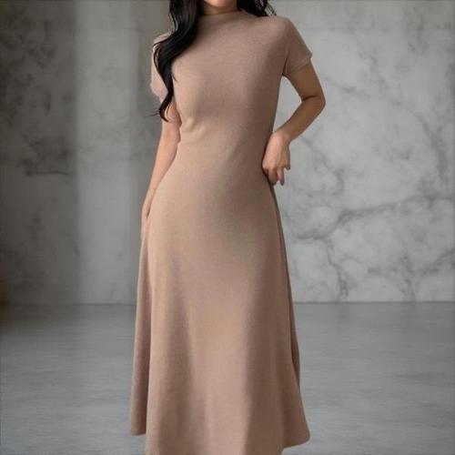 [다잇템][다잇템] 여성 반소매 패션 후레아 모크넥 FW 들러리 슬림핏 롱드레스_23740511_588872