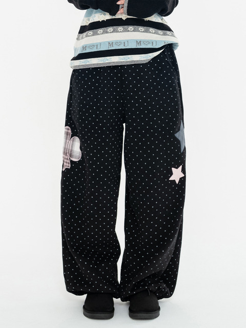 [하이스쿨디스코] 도트 스타 클로버 플리스 팬츠_블랙