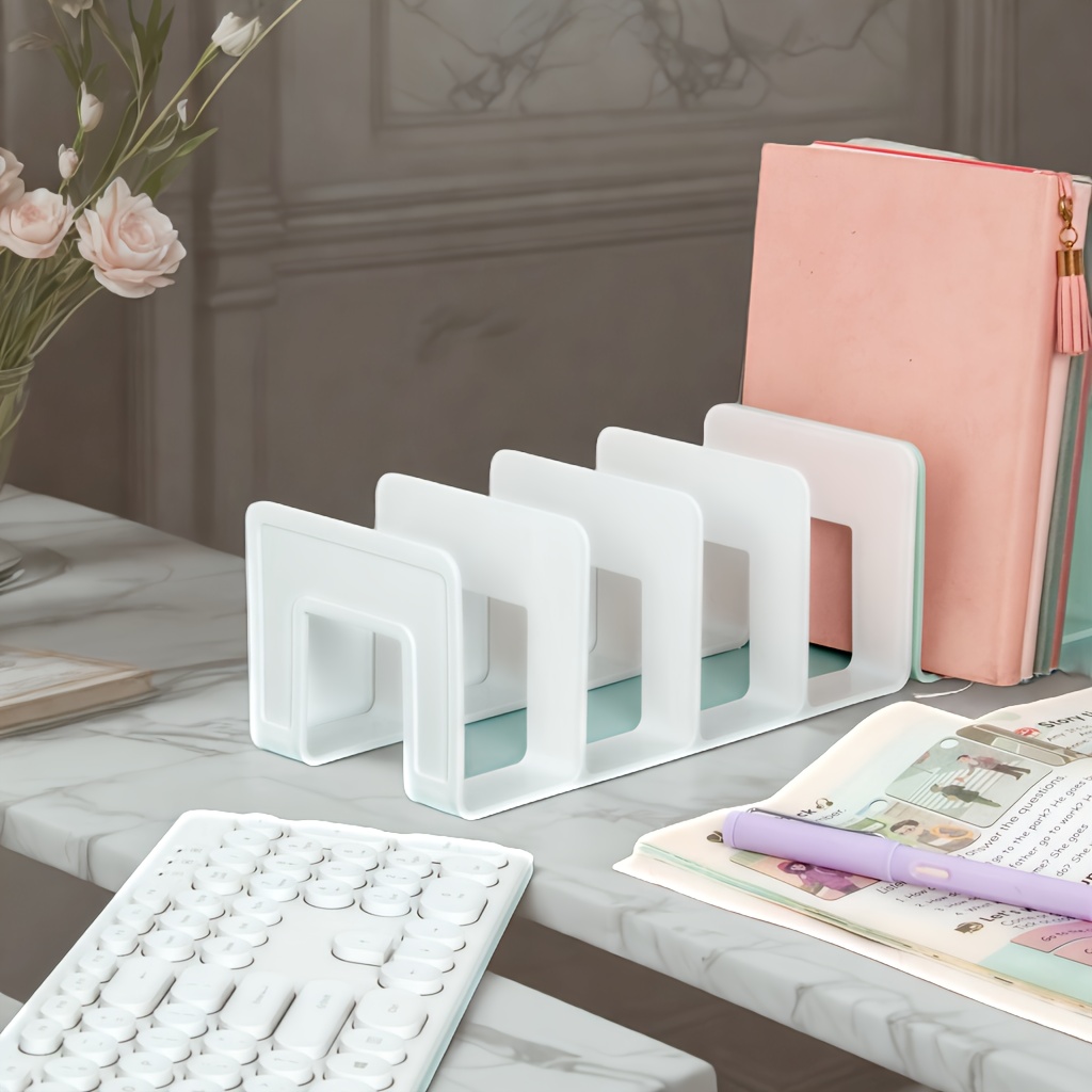 TEMU 4단 파스텔 핑크/블루/그린/화이트 북스탠드 & 데스크탑 정리대 - 대용량 헤비듀티 A-프레임 북엔드 선반, 공간절약형 수직 책장 (사무실, 도서관용) - 책, 저널, 태블릿 호환