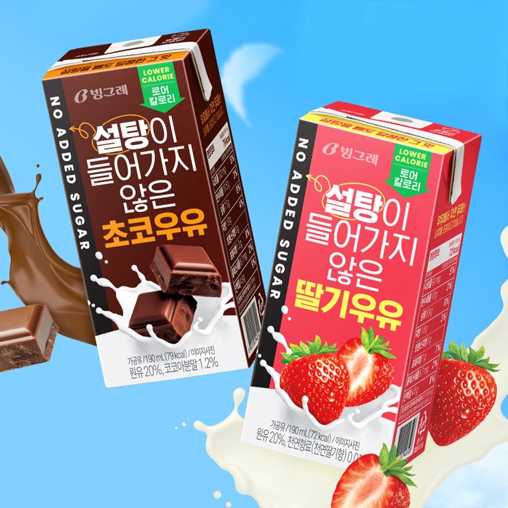 설탕이 들어가지 않은 우유 190ml*48팩 2종 택1 (초코 / 딸기)