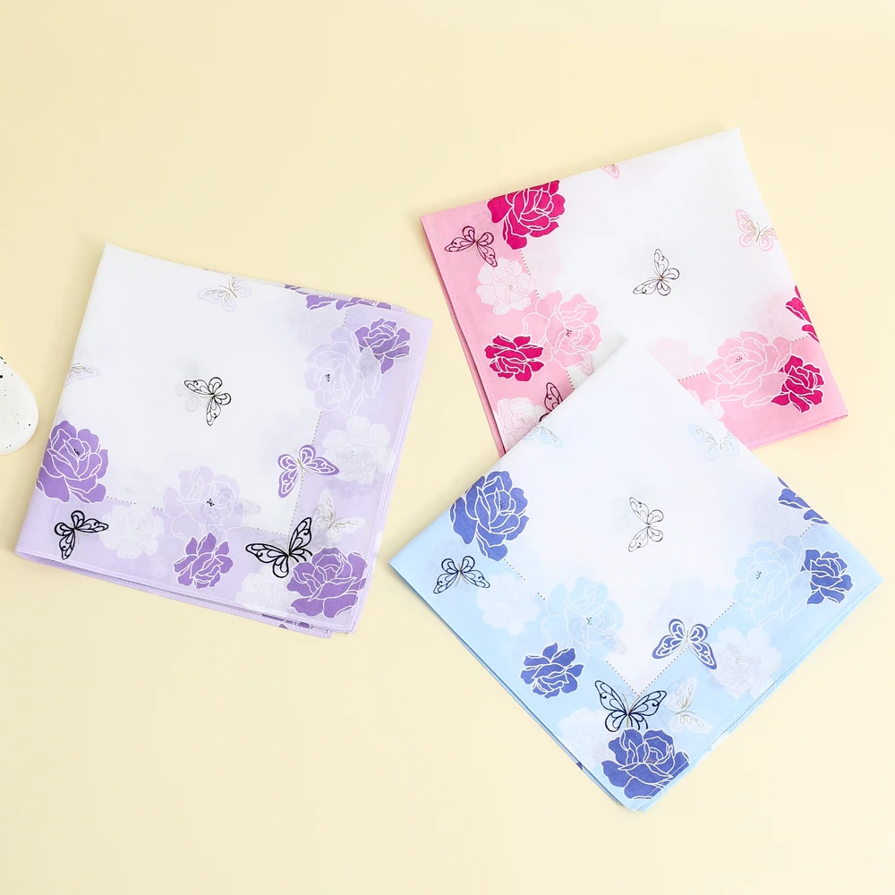 여성용 우아한 꽃 손수건 3팩, 순면 땀 수건, 플랩 포켓 바지 수건, 결혼 용품, 비즈니스 선물, 어머니날 선물