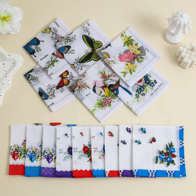 3/12Pcs 여성 순수 코튼 인쇄 손수건 코튼 부드러운 얇은 흡수성 땀 닦는 핸드 타월 웨딩 용품 선물 43cm