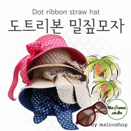 (파우치데이) 기본 (땡처리) 밀짚모자 도트리본 모던 WFJD5RM