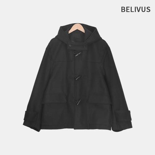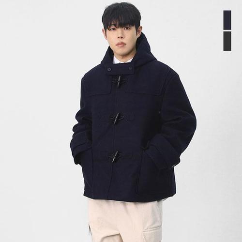 빌리버스 남성 간절기 오버핏 울혼방 떡볶이 후드 하프 더플 코트 BAZ003