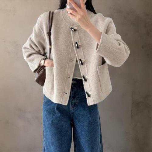 [옷자락]여성 토글 버튼 라운드넥 울 혼합 하프 떡볶이 코트
