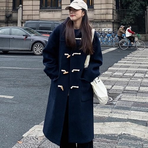 [다잇템]여성 혼합 단추 토글 하프 울 U넥 떡볶이 코트