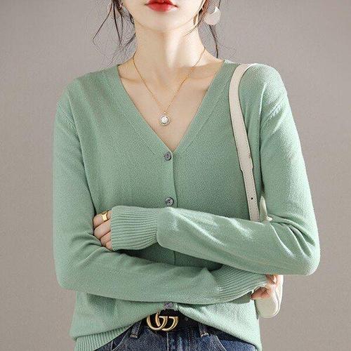 [모노무드]MNO V라인 노멀 심플패턴 여자 6색 올데이 뜨개탑니트가디건