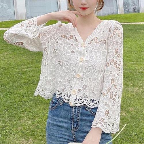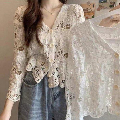 [셀러허브_여성트랜드패션]ONM 여성 여름 봄 뜨개 크로셰 니트 긴팔 가디건 화