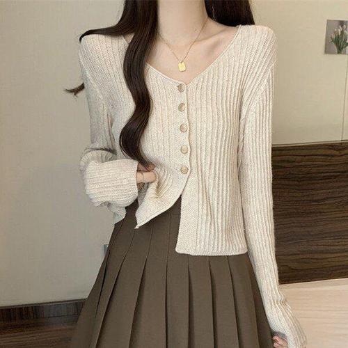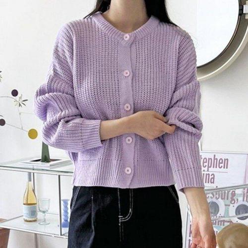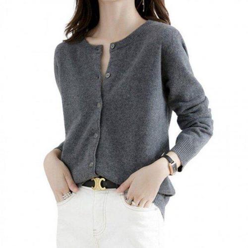 [모노무드]MNO 더블 버클 심플넥 뜨개탑 카디건 여성용 시즌겉옷 S/S 스타일링 여성용 크롭핏 봄가디건
