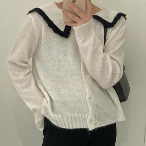 [다잇템][다잇템] 여성 뜨개 카라넥 빅 여유핏 그런지 콘트라스트 가디건_22894536_588872