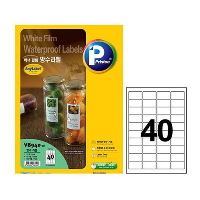 오피스넥스 방수 라벨(40칸 V8940 10매 프린텍)