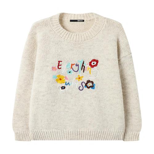 [비엔엑스]영문 레터링 자수 라운드 긴팔 니트 (BX4KP026L0)